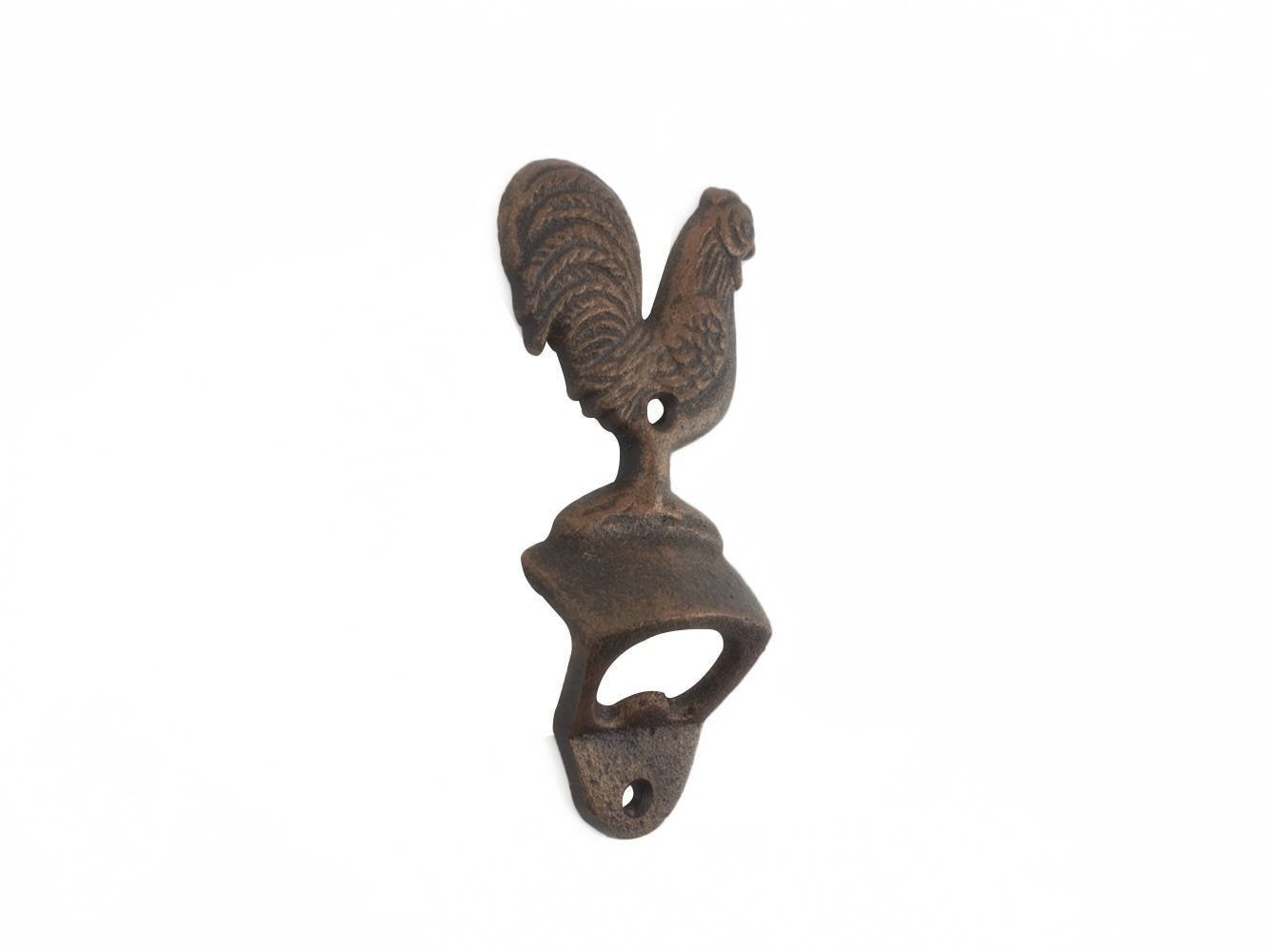 This Rustic Copper Cast Iron Rooster Bottle Opener 6" is the perfect addition to any country themed kitchen. Both decorative and reliable, this rustic bottle opener will open even the most difficult of bottles with ease. This fully functional bottle opener also allows for easy decorative mounting and can be a great gift for the true country enthusiast in your life. This cast iron bottle opener is perfect for all settings- in a country house, while tailgating, or wherever you need to quench your thirst.