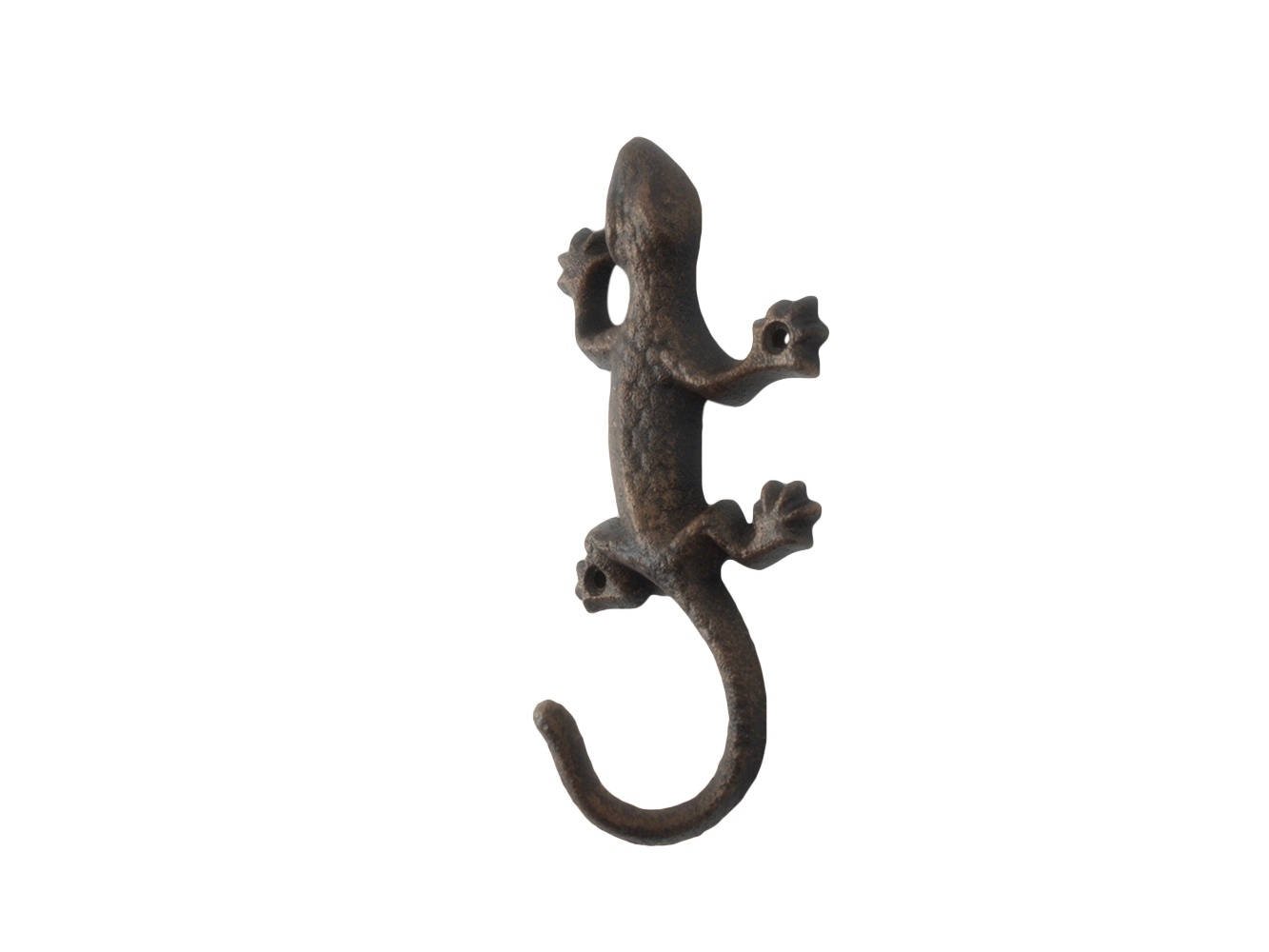 The Rustic Copper Cast Iron Lizard Hook 6" is the perfect addition for any safari themed home. Handcrafted from solid cast iron, this Lizard Hook 6" is durable, functional and decorative. Easily mountable, display this decorative key hook to show those who visit your home affinity for the safari lifestyle.