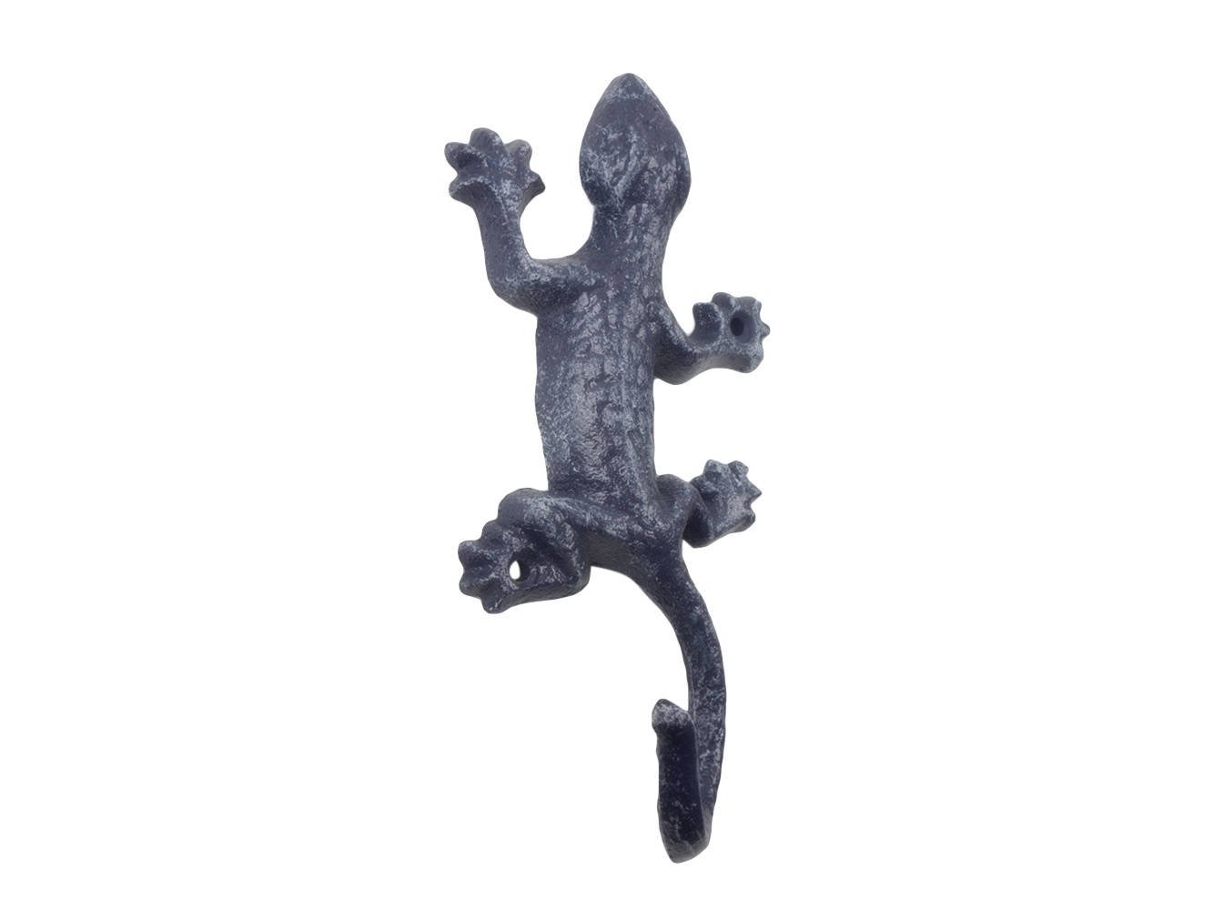 Rustic Dark Blue Cast Iron Lizard Hook 6""