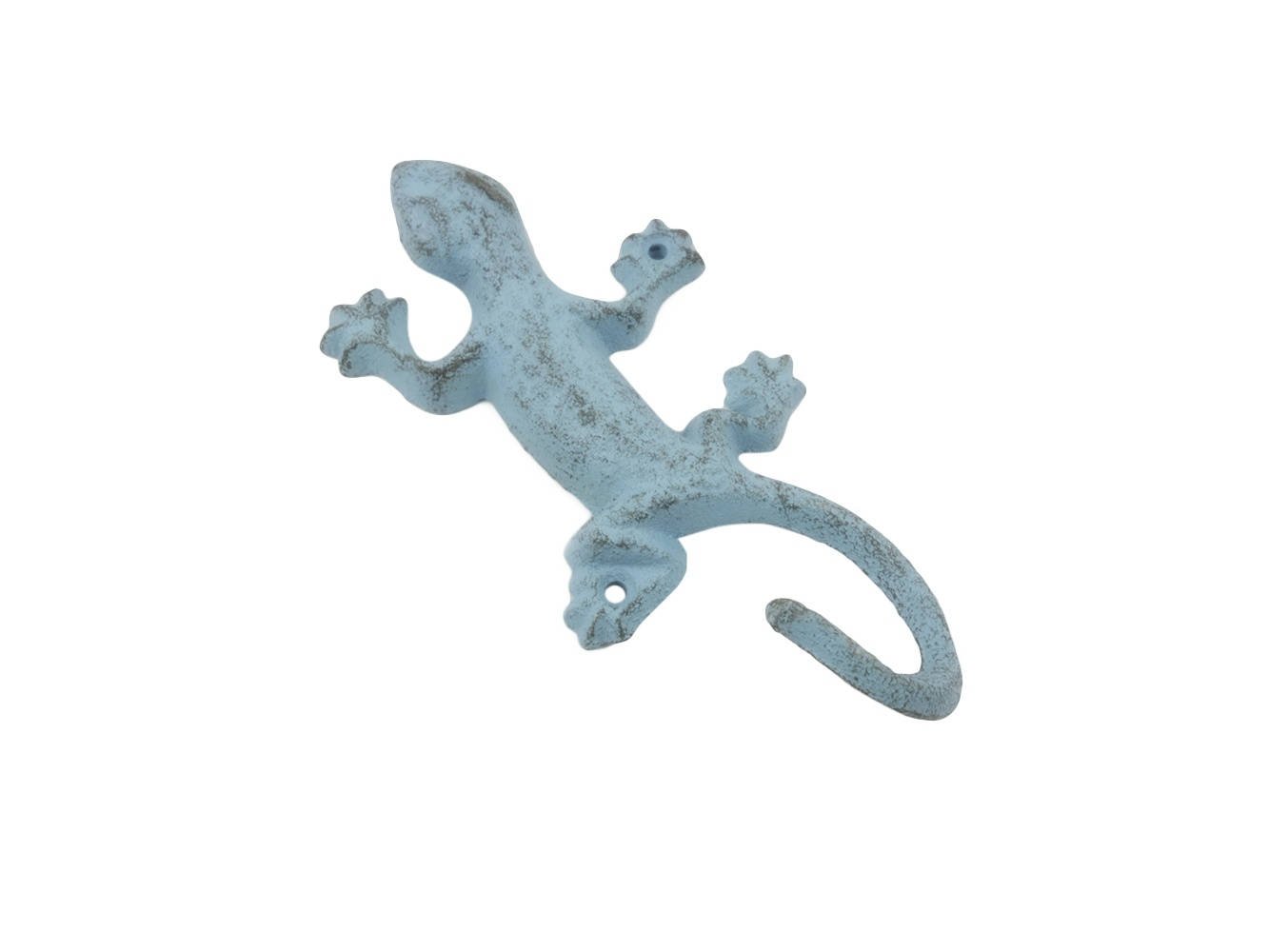 Rustic Light Blue Cast Iron Lizard Hook 6""