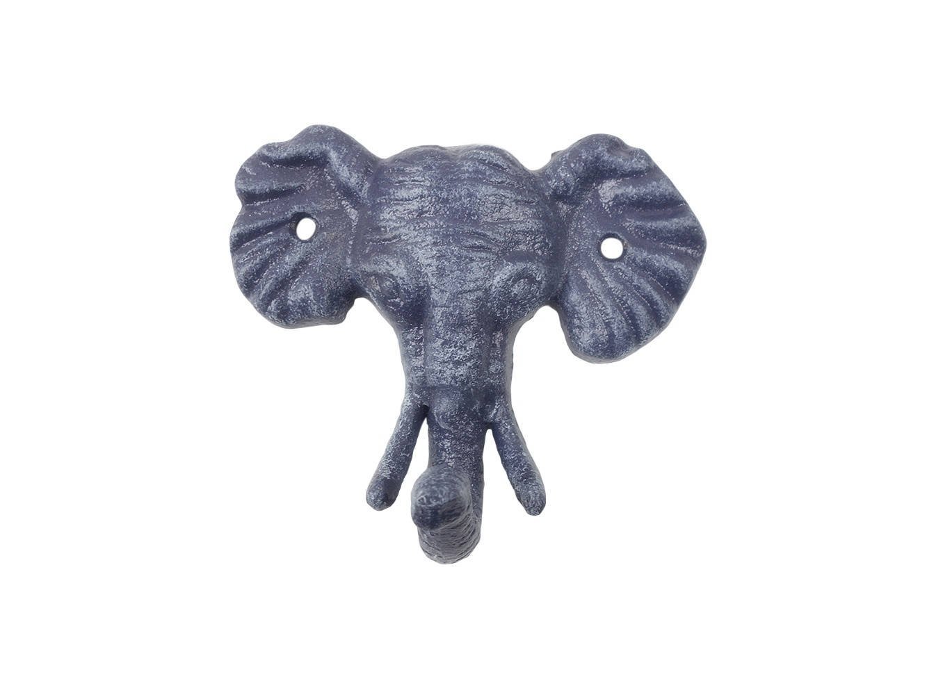 This Rustic Dark Blue Cast Iron Elephant Hook 5" is the perfect addition to any safari themed home. Ideal for hanging clothes and accessories, this durable elephant hook 5" is handcrafted from cast iron. Easily mountable, display this decorative hook to show those who visit your home your affinity for the safari lifestyle.