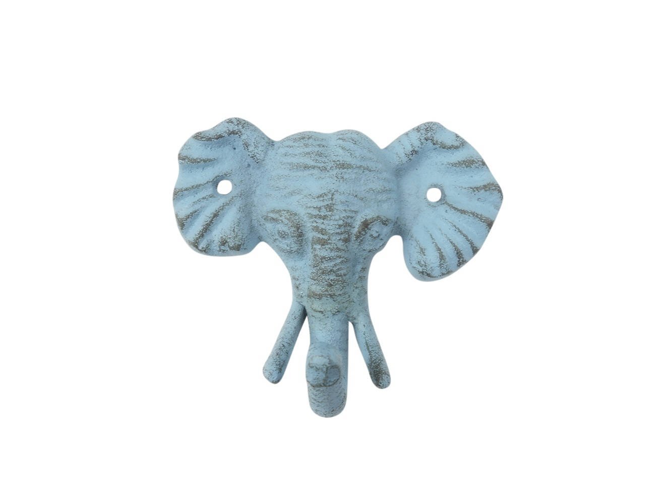 Rustic Light Blue Cast Iron Elephant Hook 5""