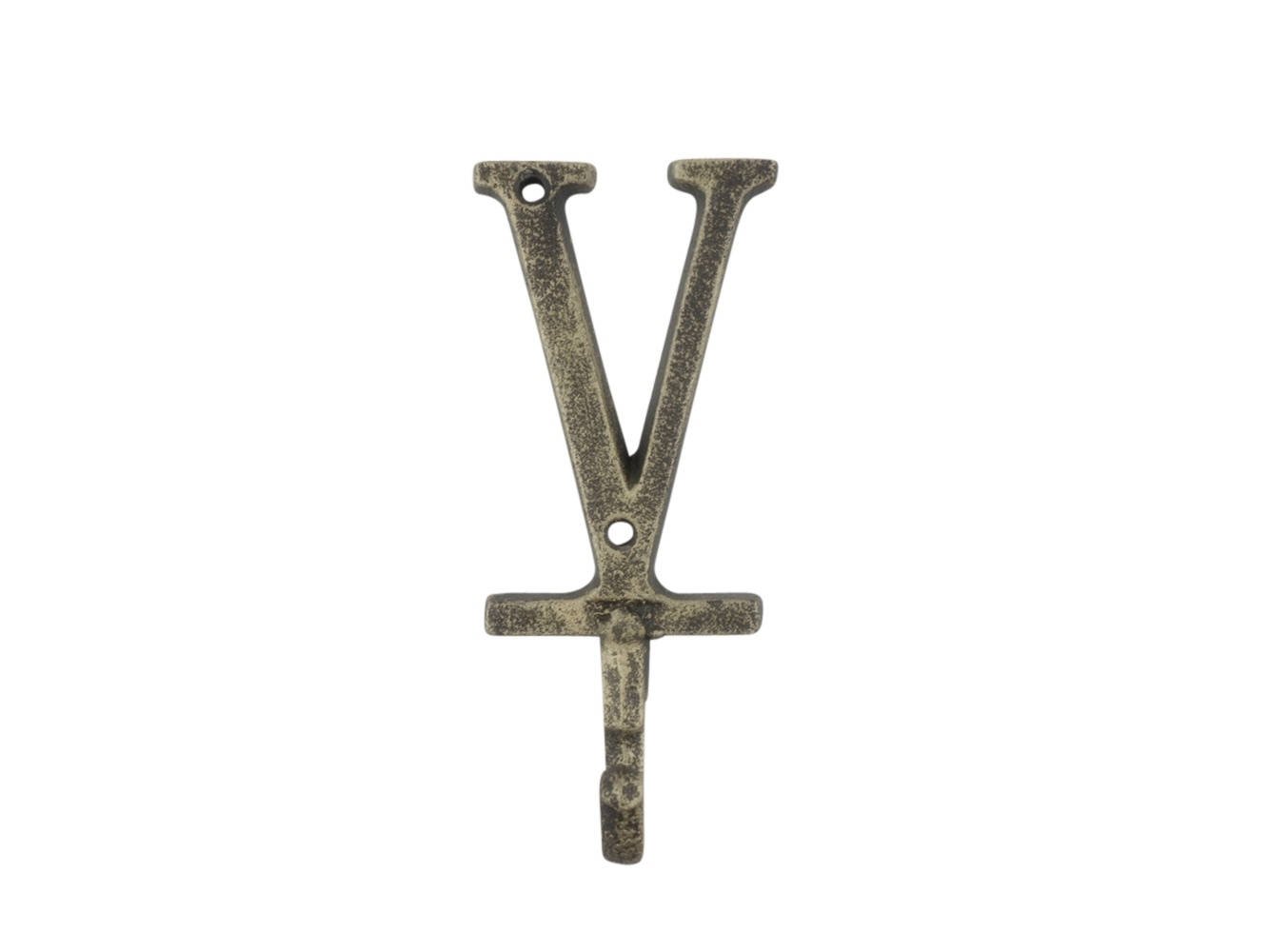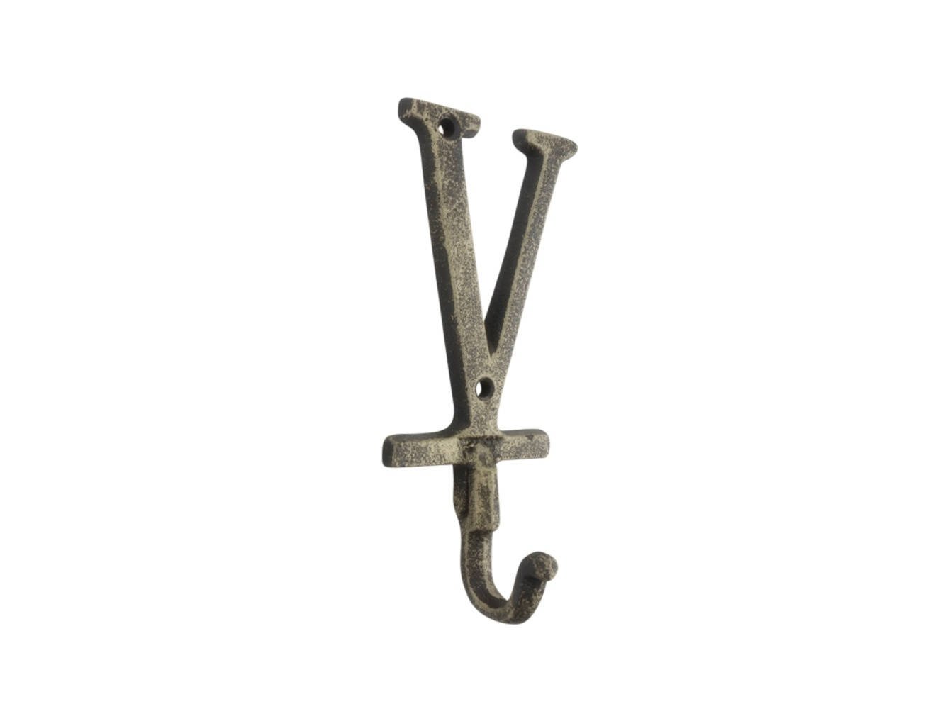Rustic Gold Cast Iron Letter V Alphabet Wall Hook 6"" Rustic Gold Cast Iron Letter V Alphabet Wall Hook 6"" Rustic Gold Cast Iron Letter V Alphabet Wall Hook 6""