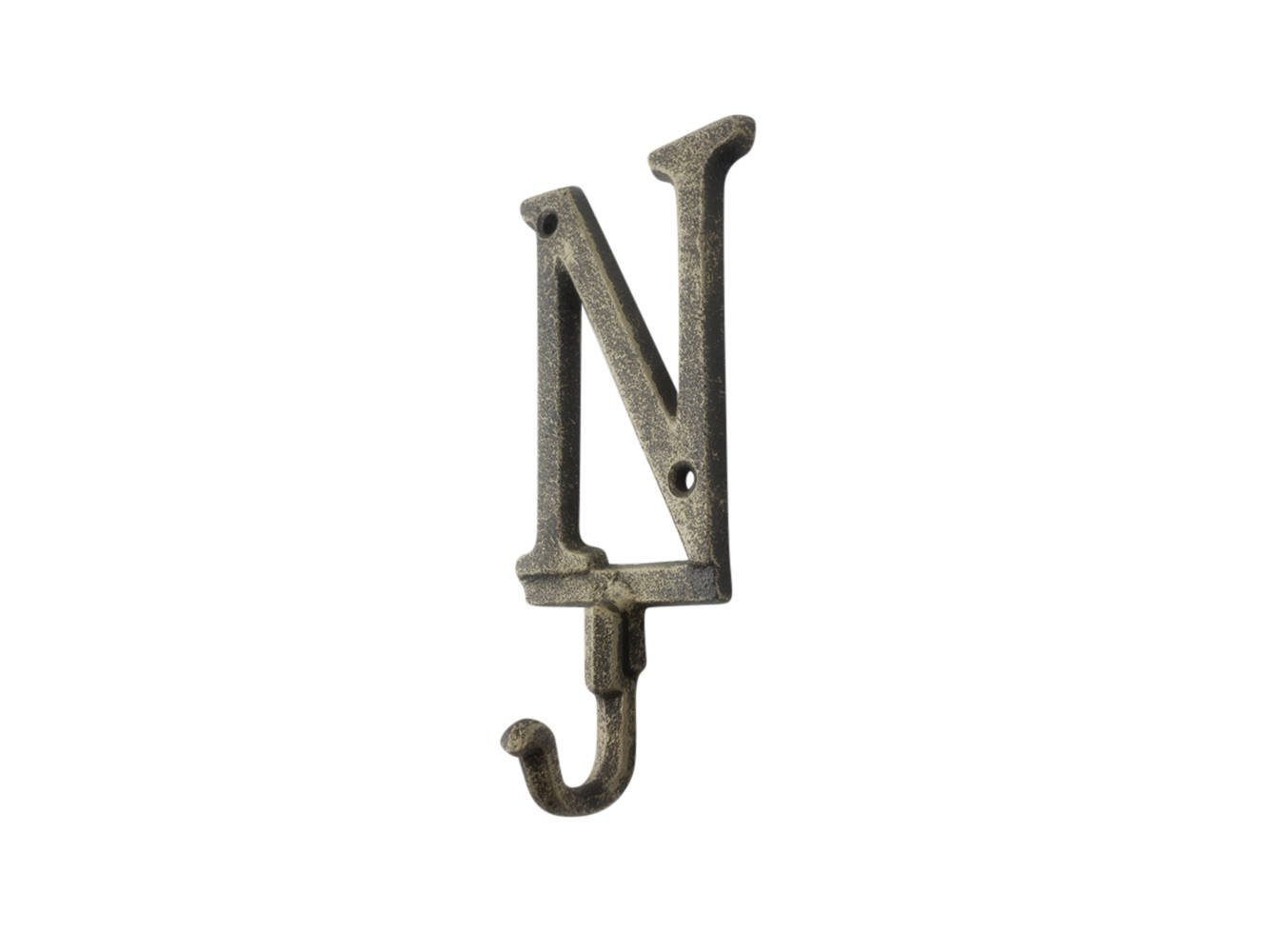 Rustic Gold Cast Iron Letter N Alphabet Wall Hook 6"" Rustic Gold Cast Iron Letter N Alphabet Wall Hook 6"" Rustic Gold Cast Iron Letter N Alphabet Wall Hook 6""
