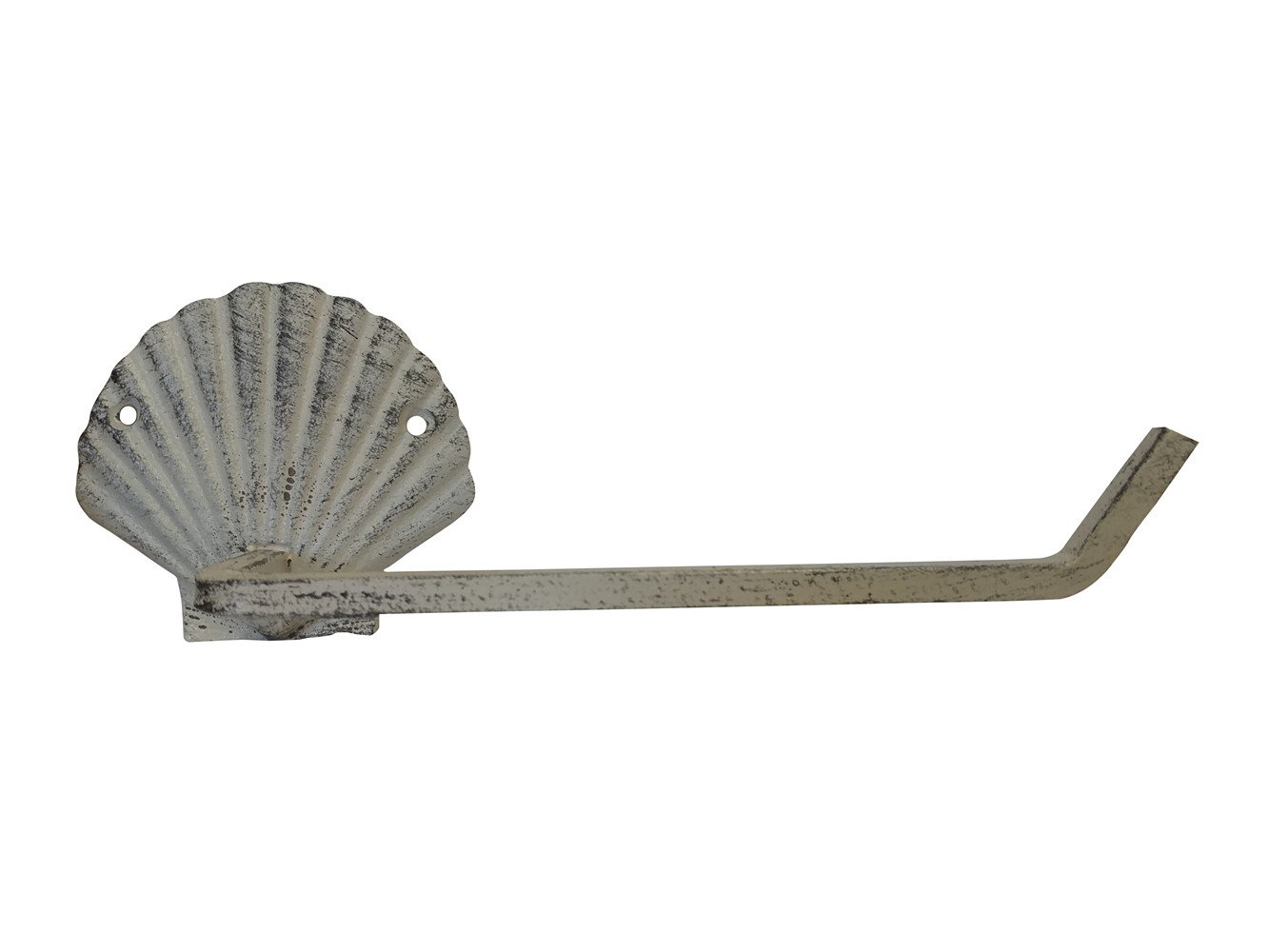 Aged White Cast Iron Shell Toilet Paper Holder 10"" Aged White Cast Iron Shell Toilet Paper Holder 10""
