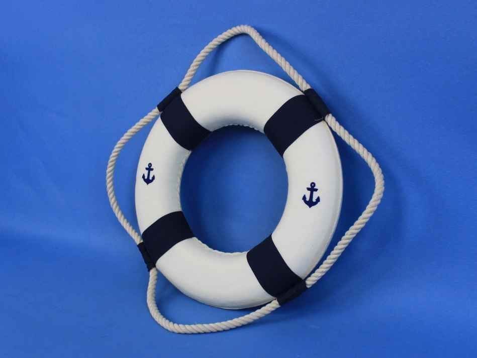 Home > Classic White Decorative Anchor Lifering With Blue Bands Christmas Ornament 10""