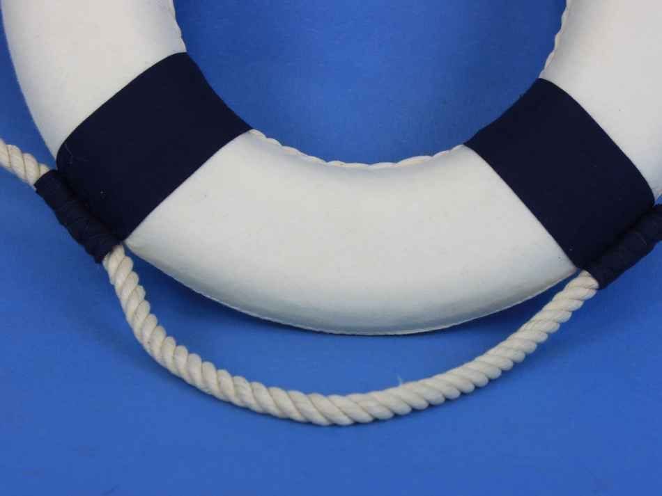 Classic White Decorative Anchor Lifering With Blue Bands Christmas Ornament 10""