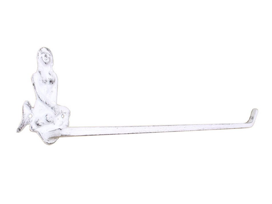 Whitewashed Cast Iron Mermaid Wall Mounted Paper Towel Holder 17"" Whitewashed Cast Iron Mermaid Wall Mounted Paper Towel Holder 17""