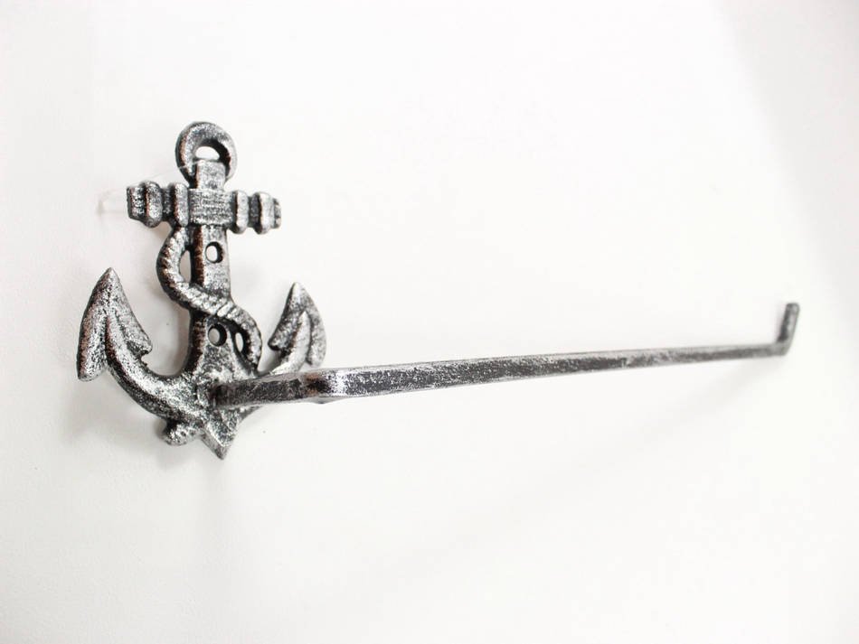 Rustic Silver Cast Iron Anchor Wall Mounted Paper Towel Holder 17"" Rustic Silver Cast Iron Anchor Wall Mounted Paper Towel Holder 17""
