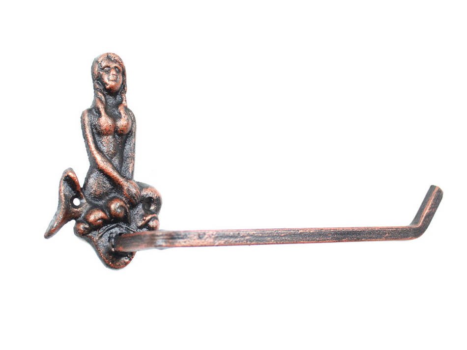 Rustic Copper Cast Iron Mermaid Toilet Paper Holder 10"" Rustic Copper Cast Iron Mermaid Toilet Paper Holder 10""
