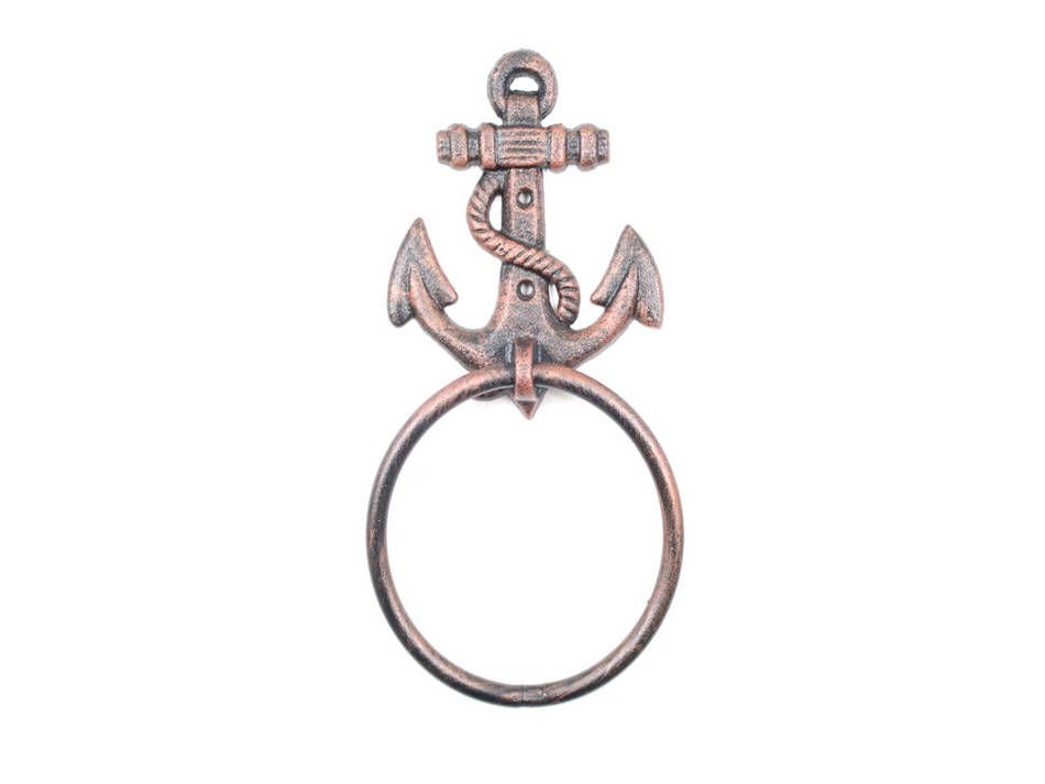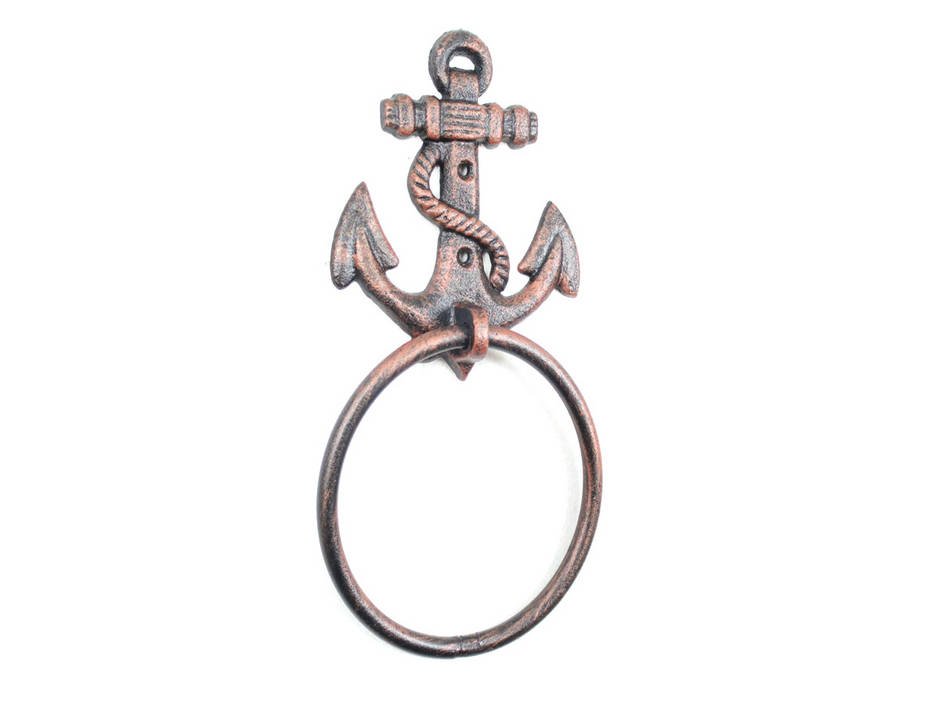 This Rustic Copper Cast Iron Anchor Towel Holder 8.5" is perfect for any nautical inspired bathroom or kitchen. It adds charm to any nautical room, while impressing your guests with their substance and thoughtfulness. Ideal for hanging towels, this durable towel holder 8.5" is crafted from cast iron.Easily mountable, display this decorative holder to show those who visit your home the affinity for the sea-faring lifestyle.