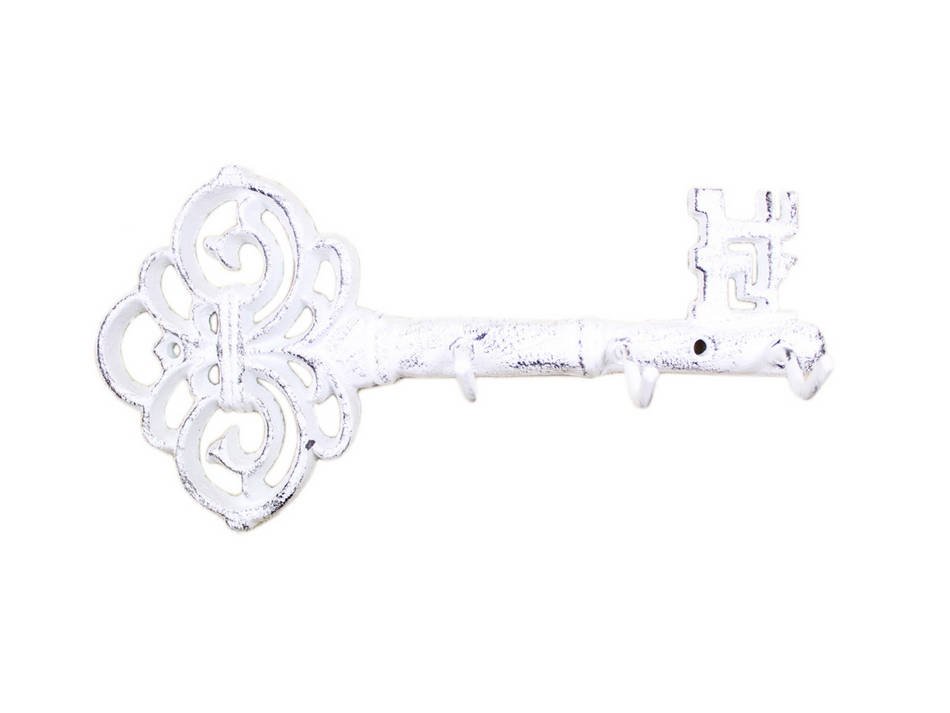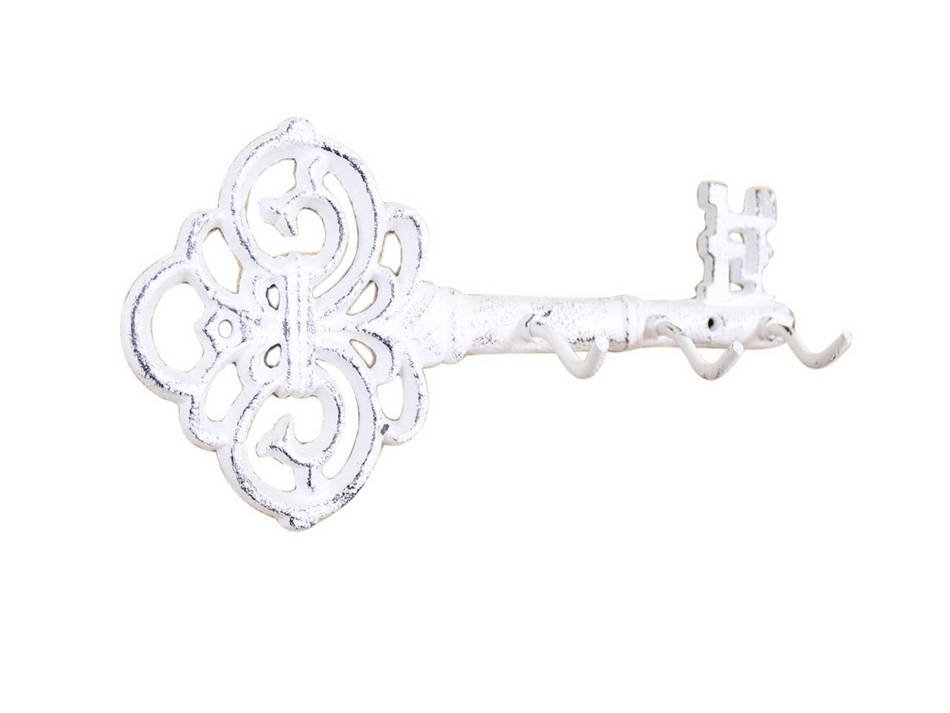 Whitewashed Cast Iron Vintage Key Wall Mounted Key Hooks 11"" Whitewashed Cast Iron Vintage Key Wall Mounted Key Hooks 11""