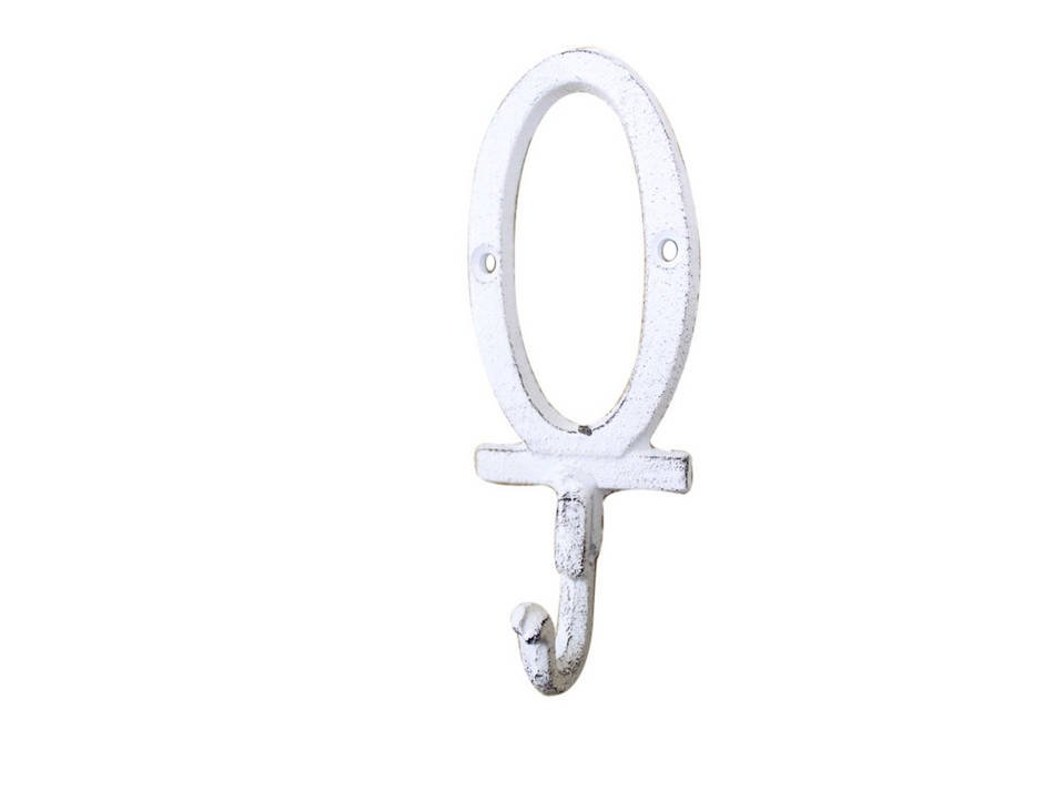 Home > Whitewashed Cast Iron Number 0 Wall Hook 6""