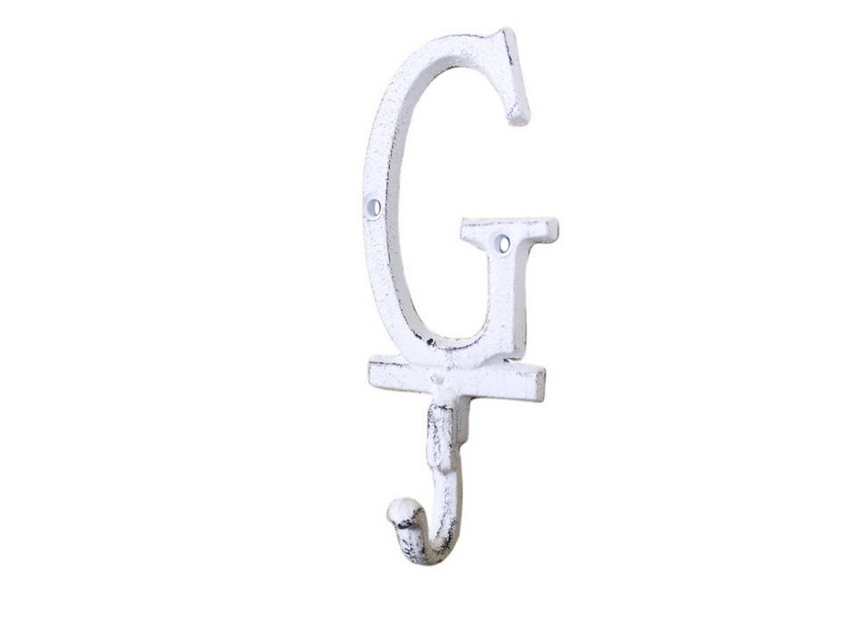 Whitewashed Cast Iron Letter G Alphabet Wall Hook 6"" Whitewashed Cast Iron Letter G Alphabet Wall Hook 6""