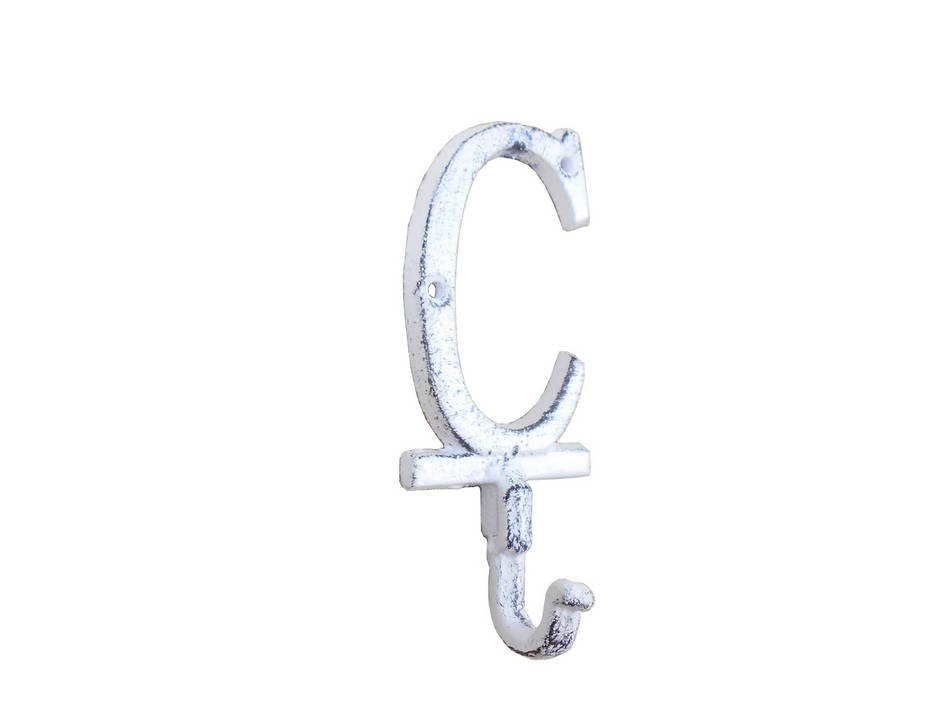 Whitewashed Cast Iron Letter C Alphabet Wall Hook 6"" Whitewashed Cast Iron Letter C Alphabet Wall Hook 6""
