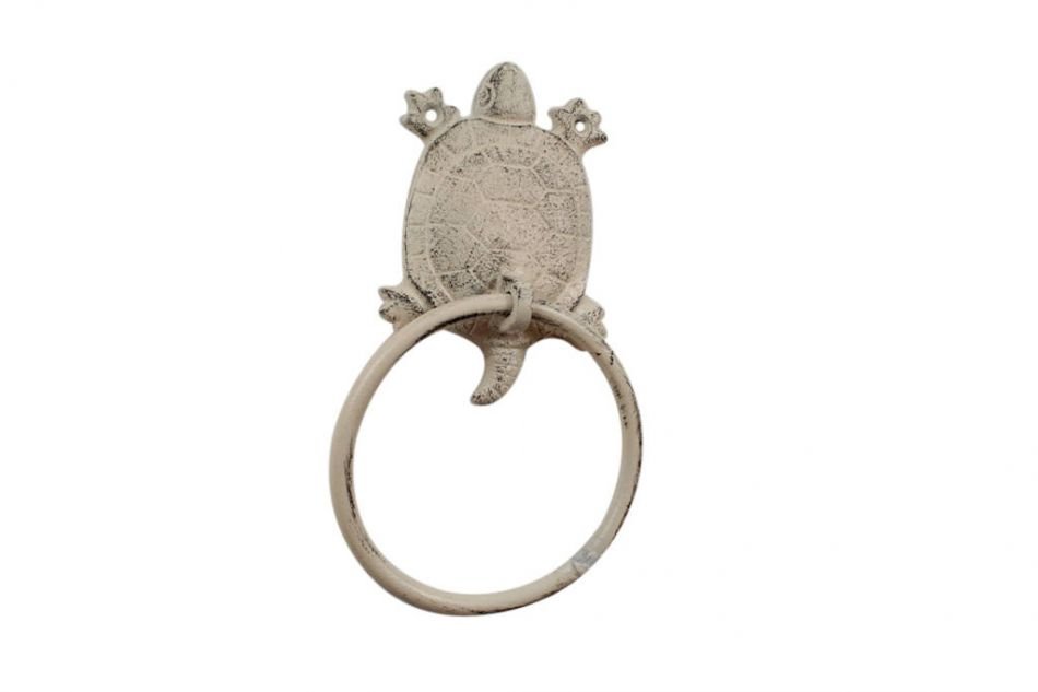 Home > Whitewashed Cast Iron Turtle Towel Holder 8""