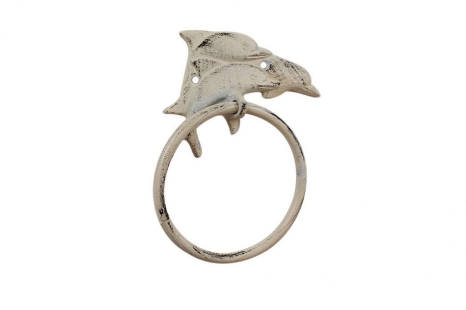 Whitewashed Cast Iron Dolphins Towel Holder 7" Whitewashed Cast Iron Dolphins Towel Holder 7" Whitewashed Cast Iron Dolphins Towel Holder 7"