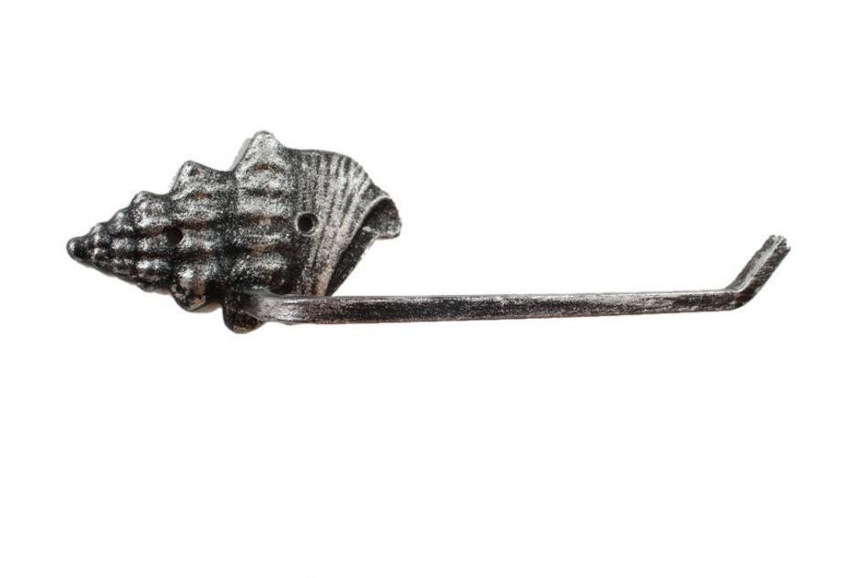 Home > Rustic Silver Cast Iron Conch Shell Toilet Paper Holder 11""