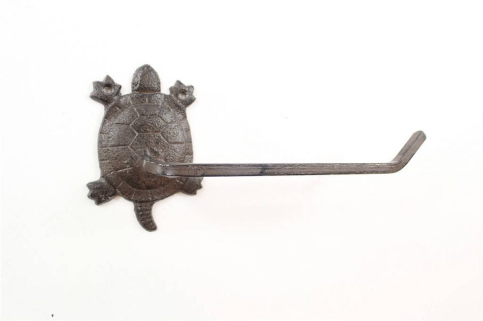 This Cast Iron Decorative Turtle Toilet Paper Holder 10" is perfect for any sea life inspired bathroom. It adds charm to any nautical room, while impressing your guests with their substance and thoughtfulness. Ideal for hanging toilet paper, this durable toilet paper holder 10" is crafted from cast iron. Easily mountable, display this decorative holder to show those who visit your home the affinity for the sea-faring lifestyle.