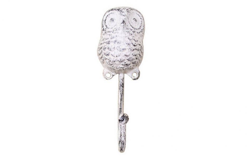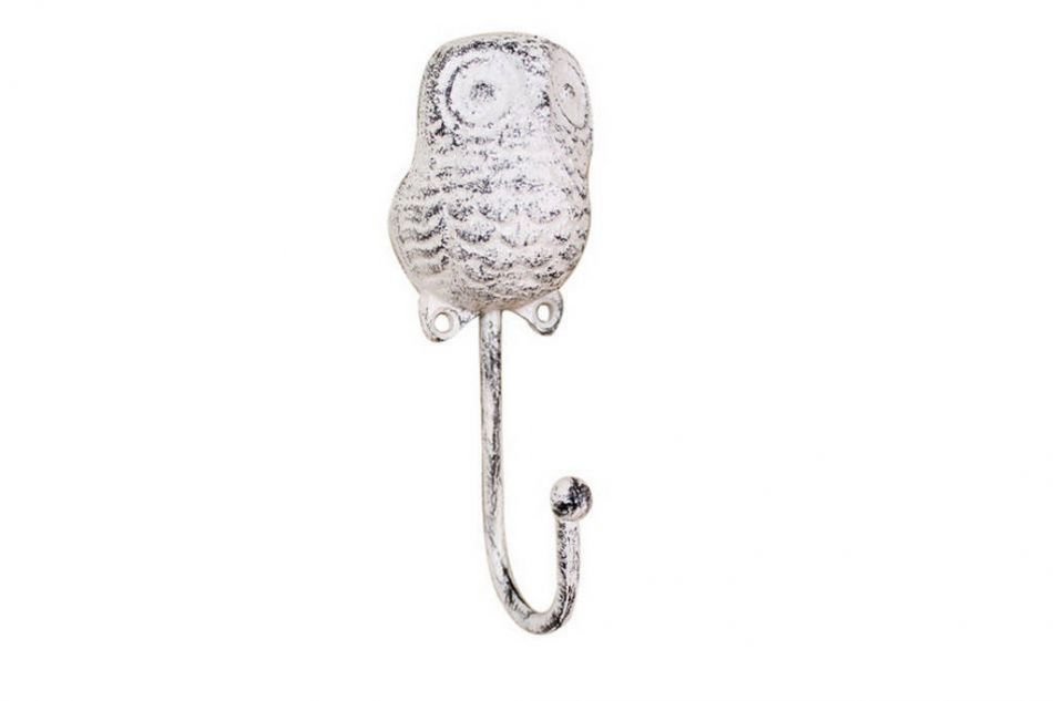Whitewashed Cast Iron Decorative Owl Hook 6""