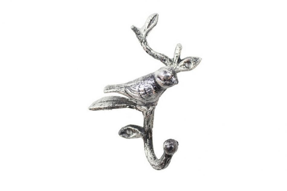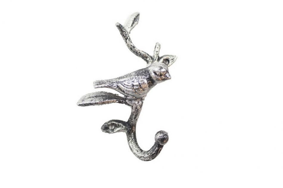 Rustic Silver Cast Iron Decorative Bird Hook 6"