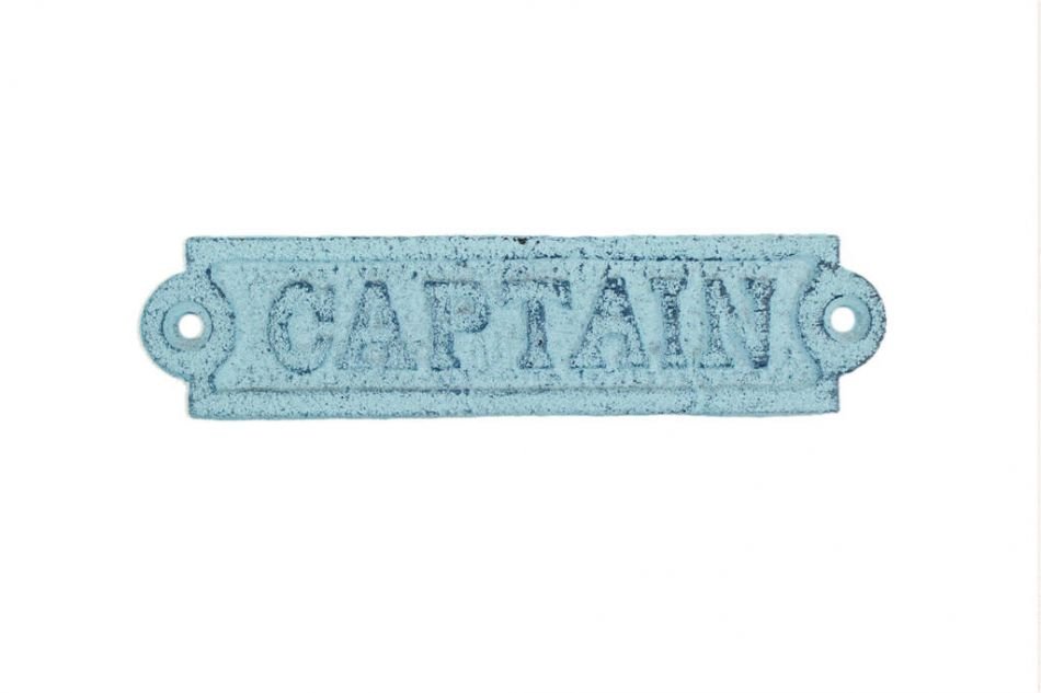 Home > Rustic Dark Blue Whitewashed Cast Iron Captain Sign 6""