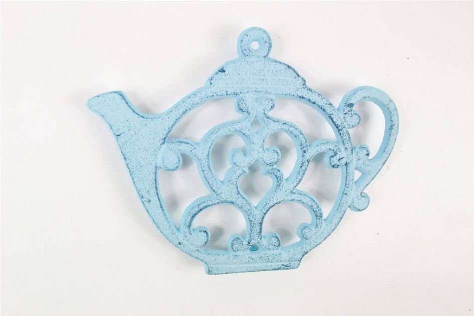 This Rustic Dark Blue Whitewashed Cast Iron Round Teapot Trivet 8" is a fun teapot trivet that brings the beauty directly to any kitchen setting. Available in different styles, let this beauty come to you.