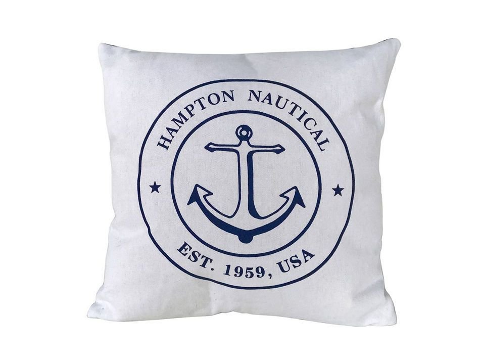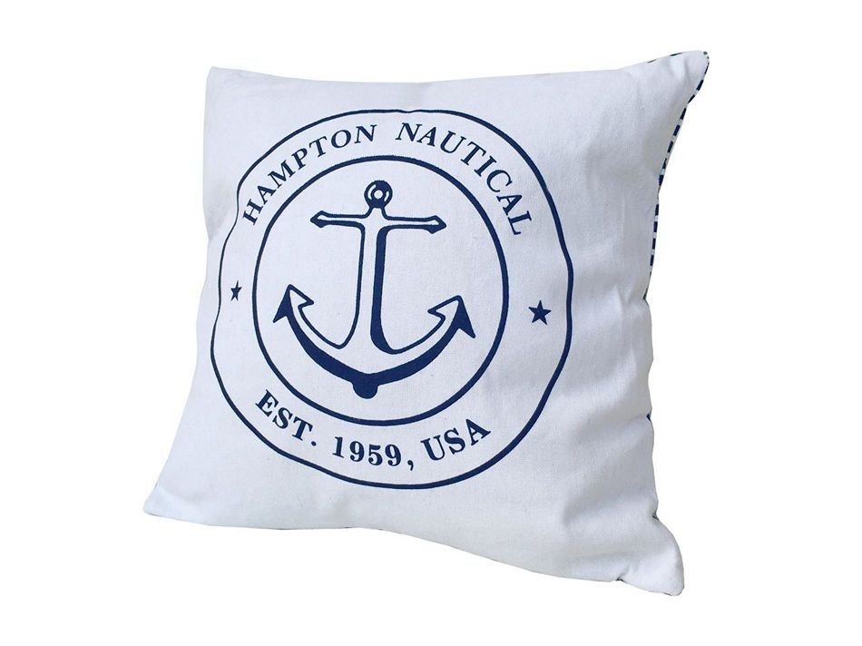 Decorative White Hampton Nautical with Anchor Throw Pillow 16"" Decorative White Hampton Nautical with Anchor Throw Pillow 16"" Decorative White Hampton Nautical with Anchor Throw Pillow 16""