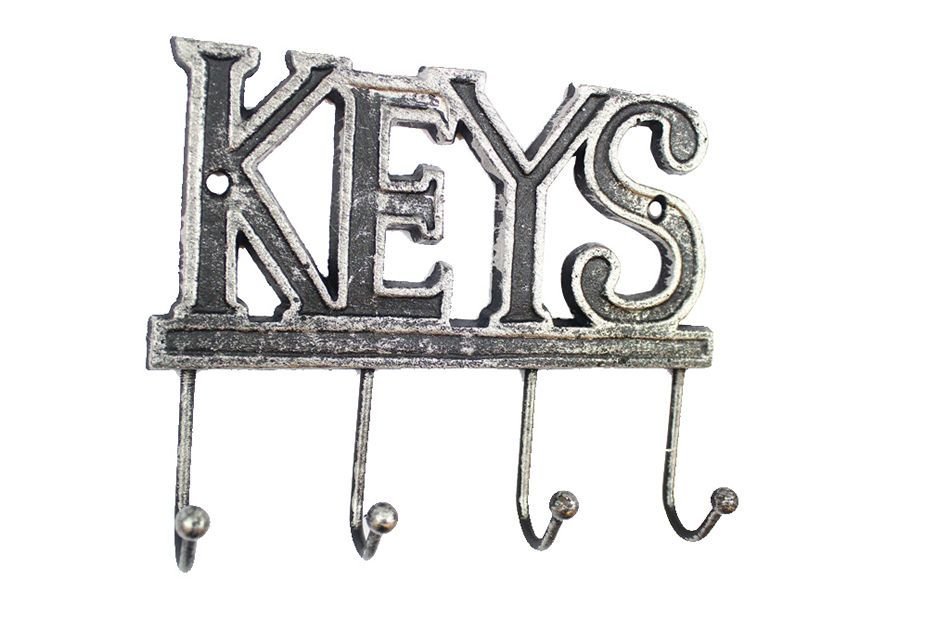 Home > Rustic Silver Cast Iron Keys Hooks 8"