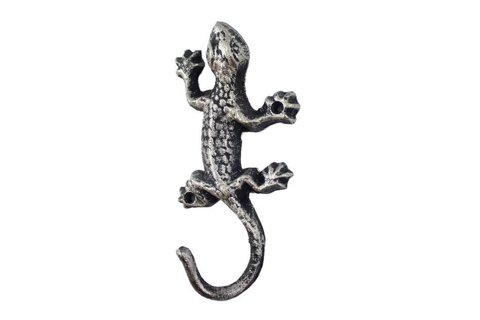 The Rustic Silver Cast Iron Lizard Hook 6" is the perfect addition for any safari themed home. Handcrafted from solid cast iron, this Lizard Hook 6" is durable, functional and decorative. Easily mountable, display this decorative key hook to show those who visit your home affinity for the safari lifestyle.