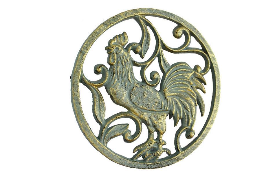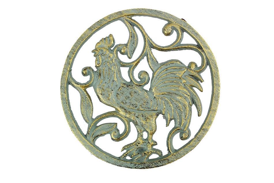 This Antique Seaworn Bronze Cast Iron Rooster Trivet 8" is a fun rooster trivet that brings the country directly to any kitchen setting. Handcrafted by our master artisans, this trivet is the ideal piece for country enthusiasts. Available in different styles, let the country come to you.