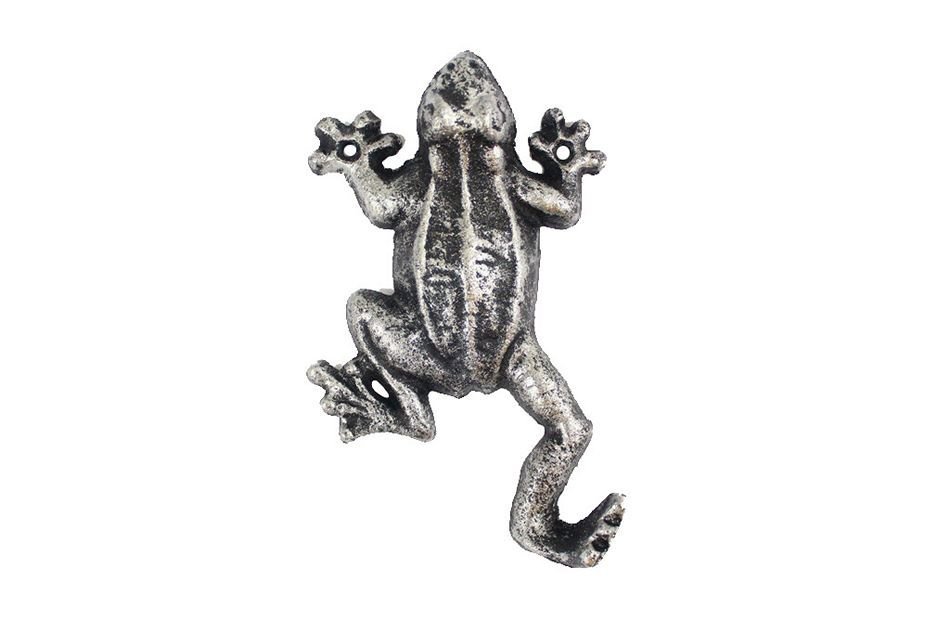 Rustic Silver Cast Iron Frog Hook 6""