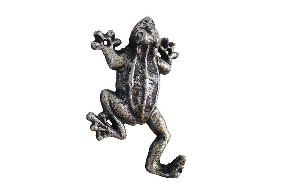 This Antique Seaworn Bronze Cast Iron Frog Hook 6" is the perfect addition to any country themed home. Ideal for hanging clothes and accessories, this durable frog hook 6" is handcrafted from cast iron. Easily mountable, display this decorative hook to show those who visit your home your affinity for the country lifestyle.