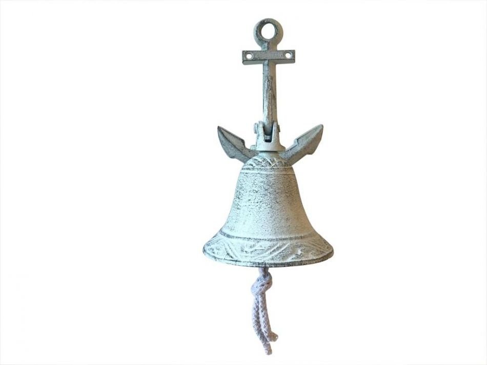 Whitewashed Cast Iron Wall Hanging Anchor Bell 8"" Whitewashed Cast Iron Wall Hanging Anchor Bell 8"" Whitewashed Cast Iron Wall Hanging Anchor Bell 8""