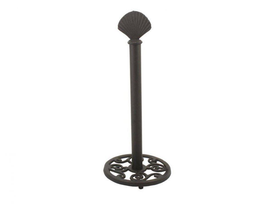 This Rustic Cast Iron Seashell Extra Toilet Paper Stand"  is perfect for any beach inspired bathroom. It adds that coastal touch to enhance your beach bathroom decor. Made to hold three extra toilet paper rolls, this durable toilet paper stand 16" is crafted from cast iron.