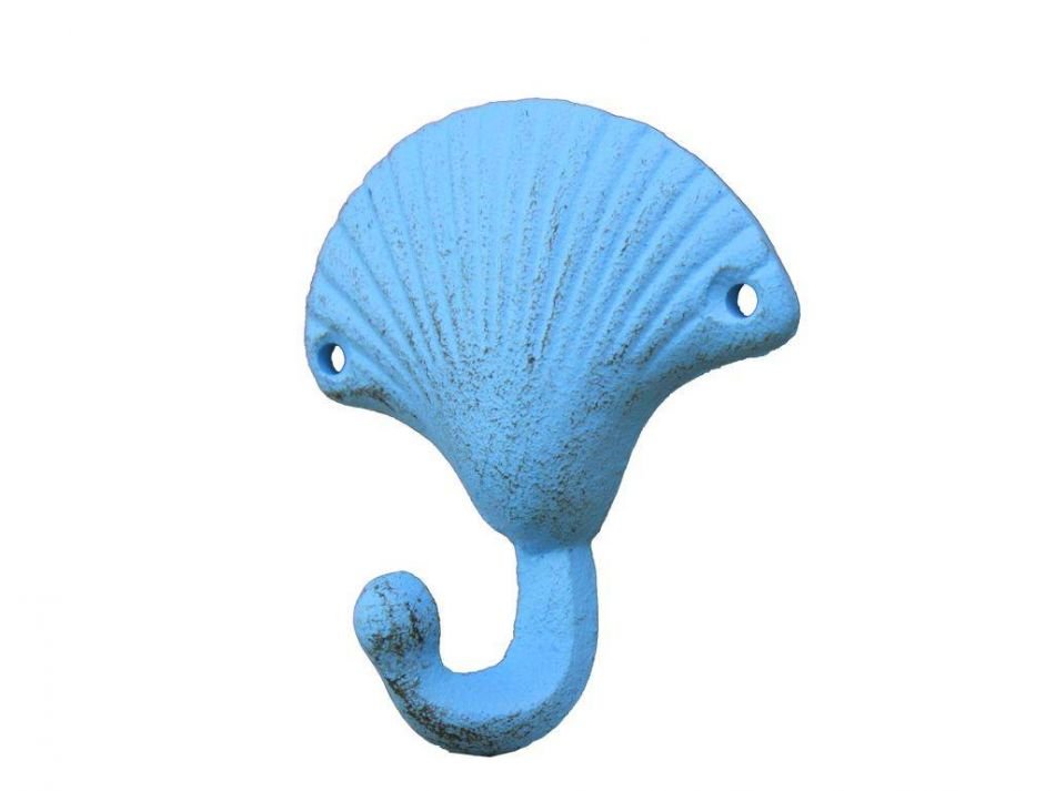 This Rustic Light Blue Cast Iron Seashell Hook 4" is the perfect addition for any nautical themed home. Handcrafted from cast iron, this rustic hook allows for easy decorative mounting, ideal for hanging clothes and accessories. Display this decorative piece to add a nautical theme to any room and show those who visit your home your affinity for the nautical sea-faring lifestyle.
