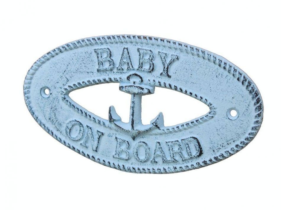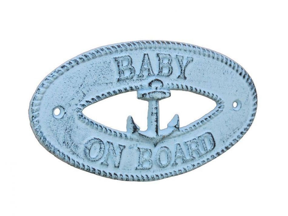 Dark Blue Whitewashed Cast Iron Baby on Board with Anchor Sign 8"" Dark Blue Whitewashed Cast Iron Baby on Board with Anchor Sign 8"" Dark Blue Whitewashed Cast Iron Baby on Board with Anchor Sign 8""