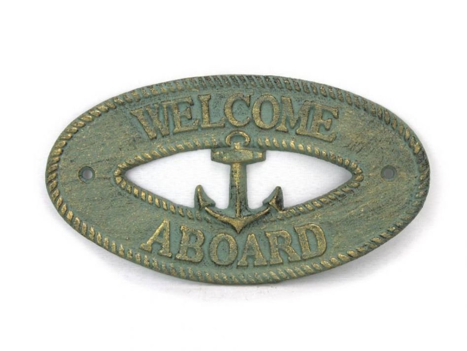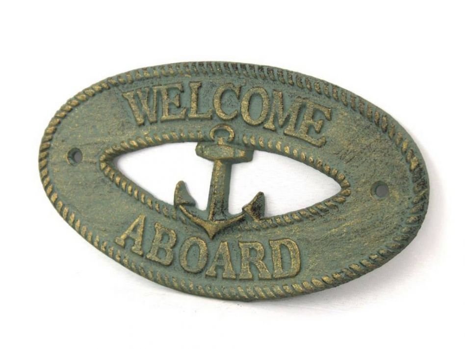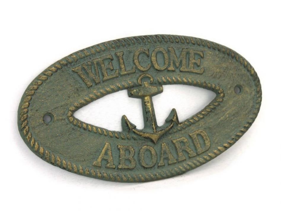Antique Bronze Cast Iron Welcome Aboard with Anchor Sign 8""