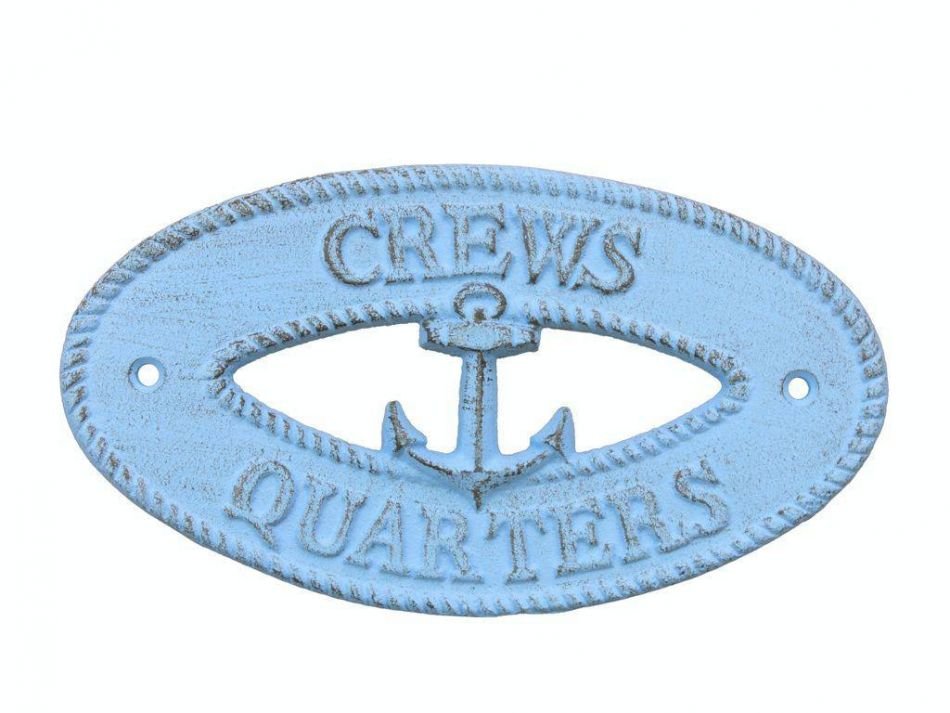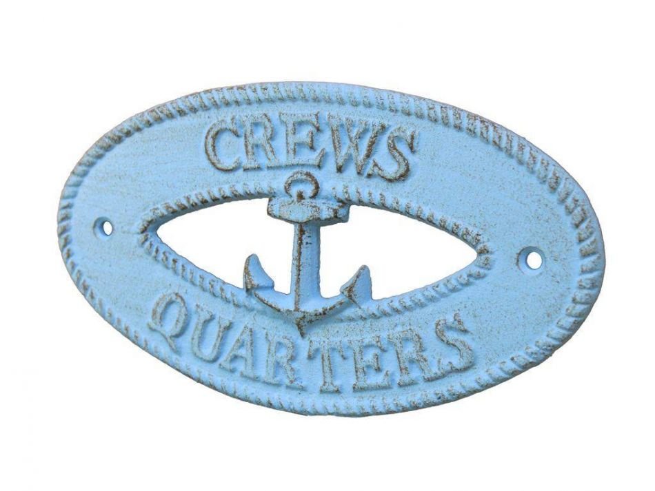 Rustic Light Blue Cast Iron Crews Quarters with Anchor Sign 8" Rustic Light Blue Cast Iron Crews Quarters with Anchor Sign 8" Rustic Light Blue Cast Iron Crews Quarters with Anchor Sign 8"