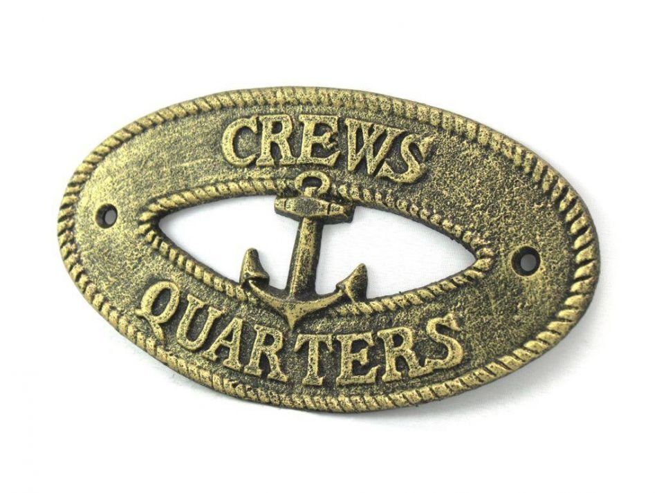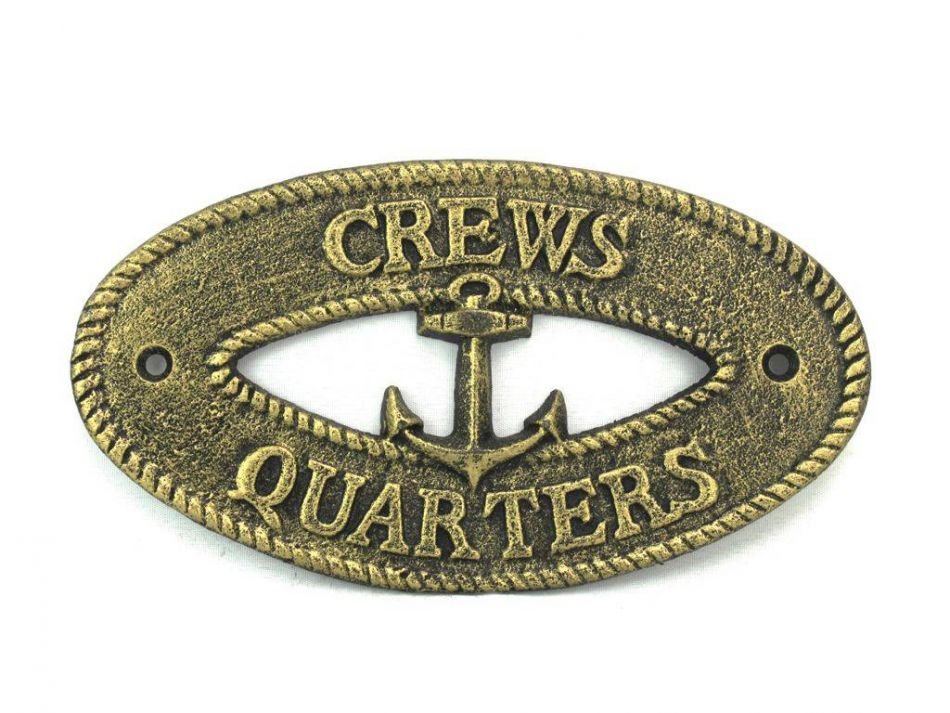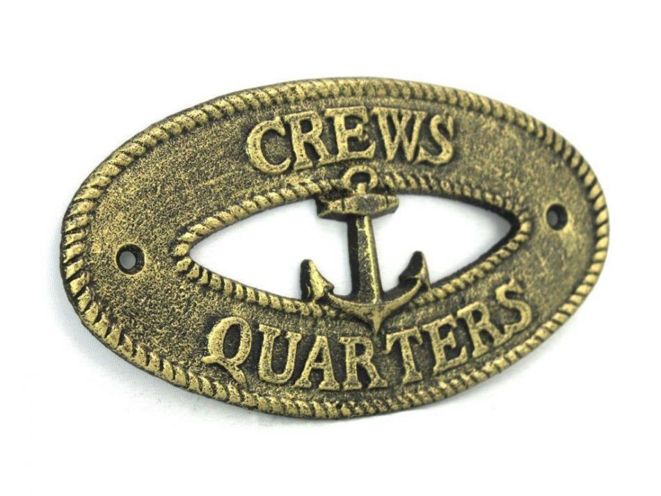 Antique Gold Cast Iron Crews Quarters with Anchor Sign 8" Antique Gold Cast Iron Crews Quarters with Anchor Sign 8" Antique Gold Cast Iron Crews Quarters with Anchor Sign 8"
