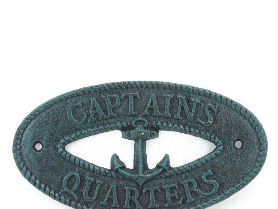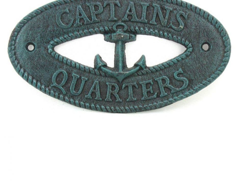 Seaworn Blue Cast Iron Captains Quarters with Anchor Sign 8"" Seaworn Blue Cast Iron Captains Quarters with Anchor Sign 8"" Seaworn Blue Cast Iron Captains Quarters with Anchor Sign 8""