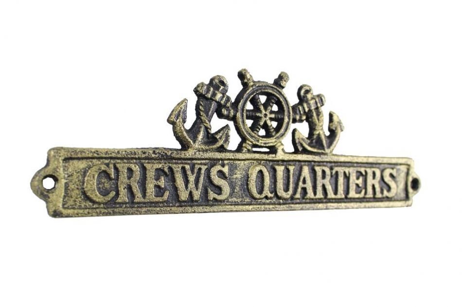 Antique Gold Cast Iron Crews Quarters Sign with Ship Wheel and Anchors 9" Antique Gold Cast Iron Crews Quarters Sign with Ship Wheel and Anchors 9" Antique Gold Cast Iron Crews Quarters Sign with Ship Wheel and Anchors 9"