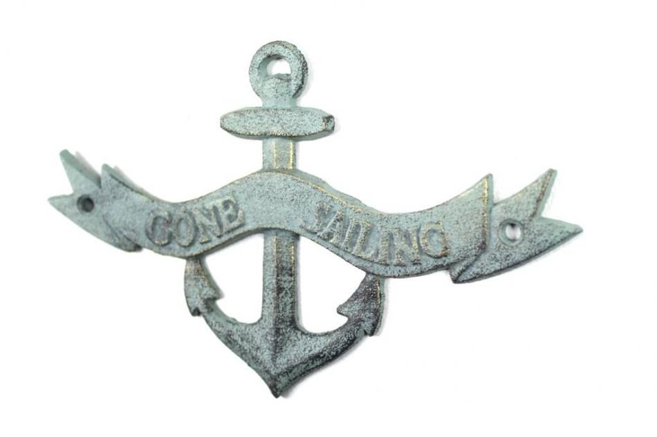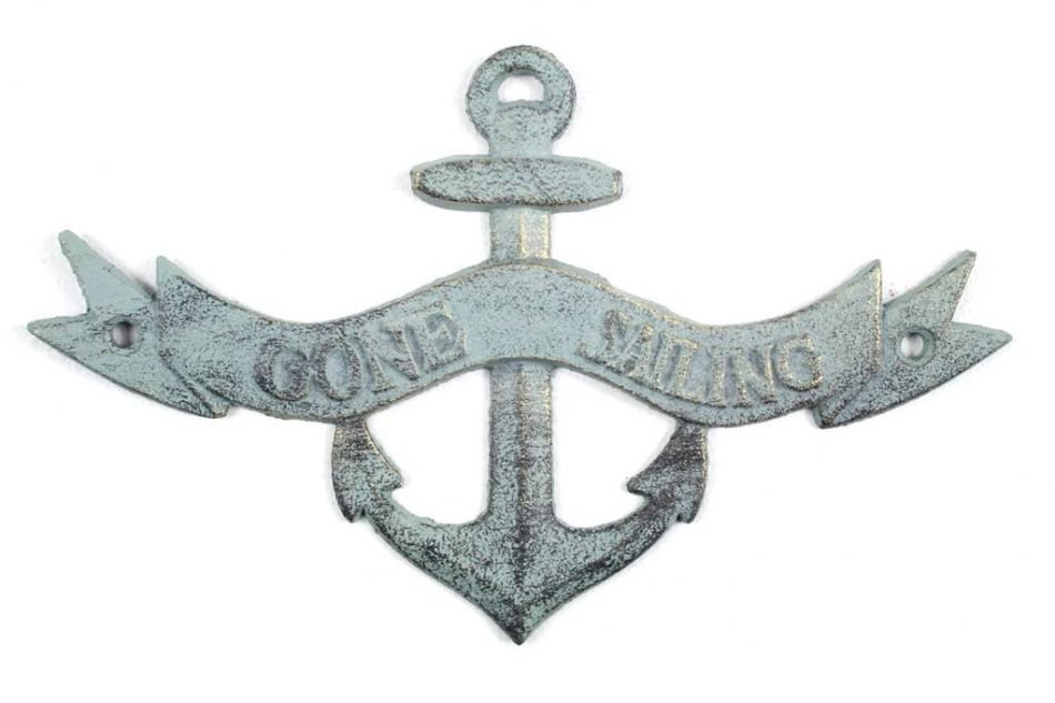 Ideal for posting in any nautical themed room, this brilliant "Antique Bronze Cast Iron Gone Sailing Anchor Sign 8" clearly gets its point across. With a textured, rustic framing and body, this distinctive nautical metal wall art plaque is easily mountable. Display this nautical decor sign on your boat or in your nautical home and show your affinity for the sea-faring lifestyle to those who visit.