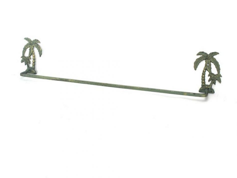 This Antique Bronze Cast Iron Palm Tree Bath Towel Holder 26" is perfect for any nautical inspired bathroom. It adds charm to any nautical room, while impressing your guests with their substance and thoughtfulness. Ideal for hanging toilet paper, this durable towel holder 26" is crafted from cast iron. Easily mountable, display this decorative holder to show those who visit your home the affinity for the sea-faring lifestyle.