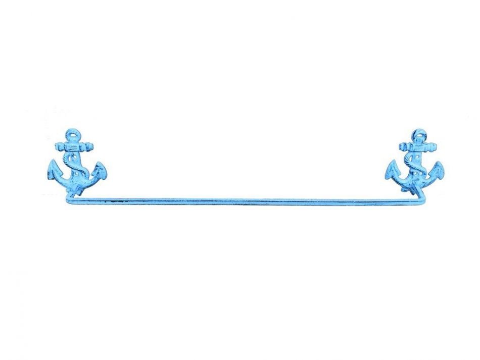 Home > Dark Blue Whitewashed Cast Iron Anchor Bath Towel Holder 27""