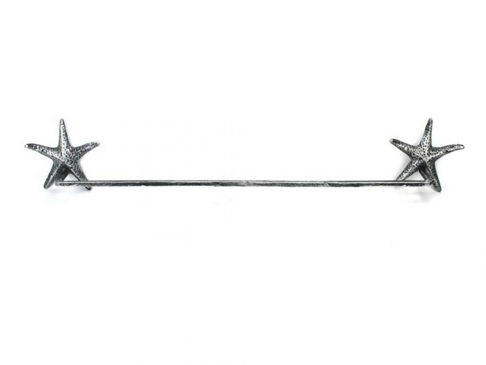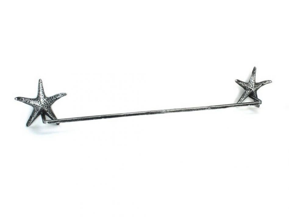 This Antique Silver Cast Iron Starfish Bath Towel Holder 28" is perfect for any nautical inspired bathroom. It adds charm to any nautical room, while impressing your guests with their substance and thoughtfulness. Ideal for hanging towels, this durable towel holder 28" is crafted from cast iron. Easily mountable, display this decorative holder to show those who visit your home the affinity for the sea-faring lifestyle.