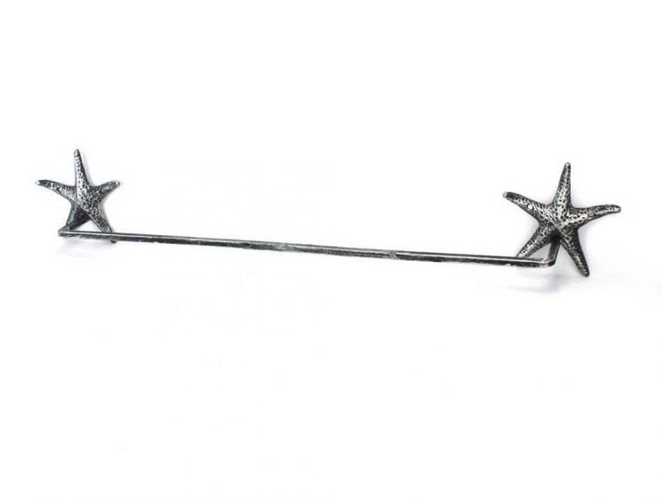 Home > Antique Silver Cast Iron Starfish Bath Towel Holder 28""