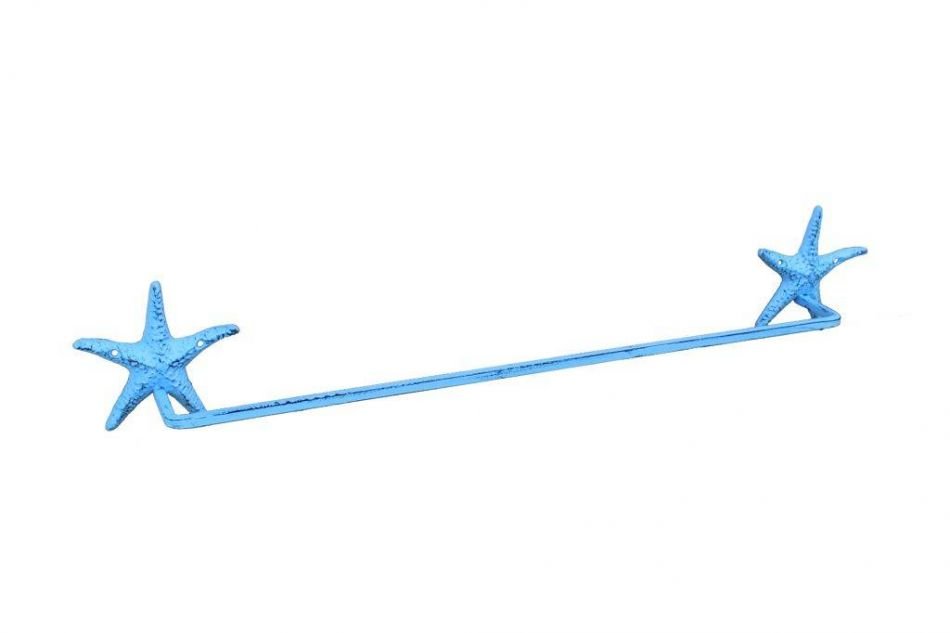 Dark Blue Whitewashed Cast Iron Starfish Bath Towel Holder 28""