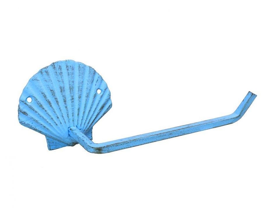 This Rustic Light Blue Cast Iron Shell Toilet Paper Holder 10" is perfect for any nautical inspired bathroom or kitchen. It adds charm to any nautical room, while impressing your guests with their substance and thoughtfulness. Ideal for hanging toilet paper, this durable toilet paper holder 10" is crafted from cast iron. Easily mountable, display this decorative holder to show those who visit your home the affinity for the sea-faring lifestyle.