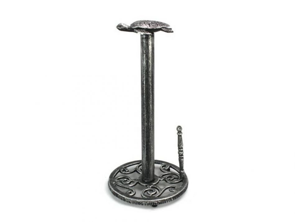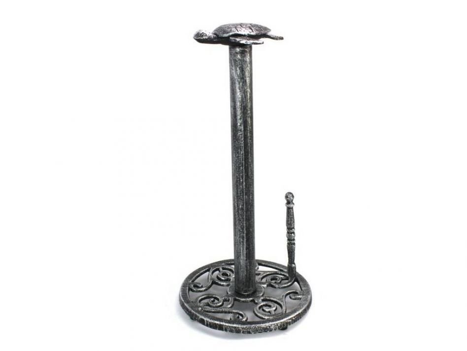 This Antique Silver Cast Iron Sea Turtle Paper Towel Holder 13" is perfect for any nautical inspired kitchen. It adds charm to any nautical room, while impressing your guests with their substance and thoughtfulness. Ideal for paper towels, this durable towel holder 13" is crafted from cast iron. Easily mountable, display this decorative holder to show those who visit your home the affinity for the sea-faring lifestyle.